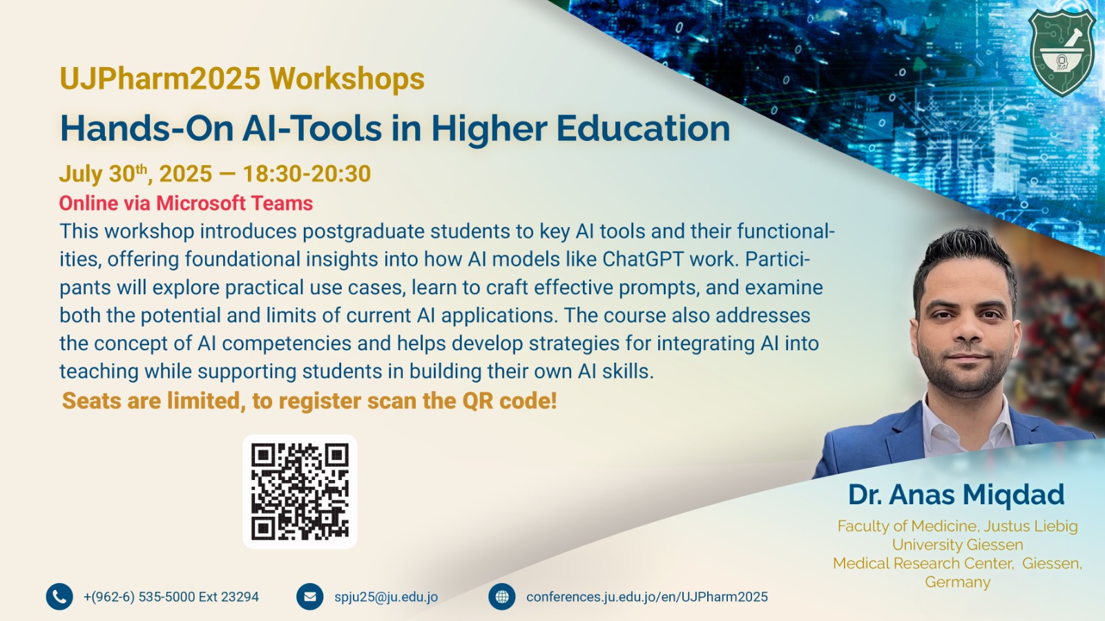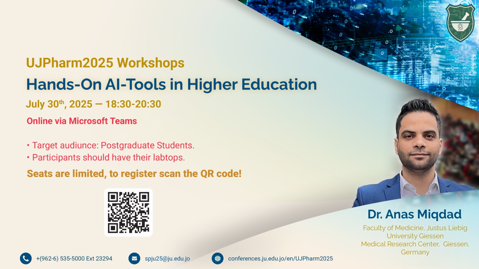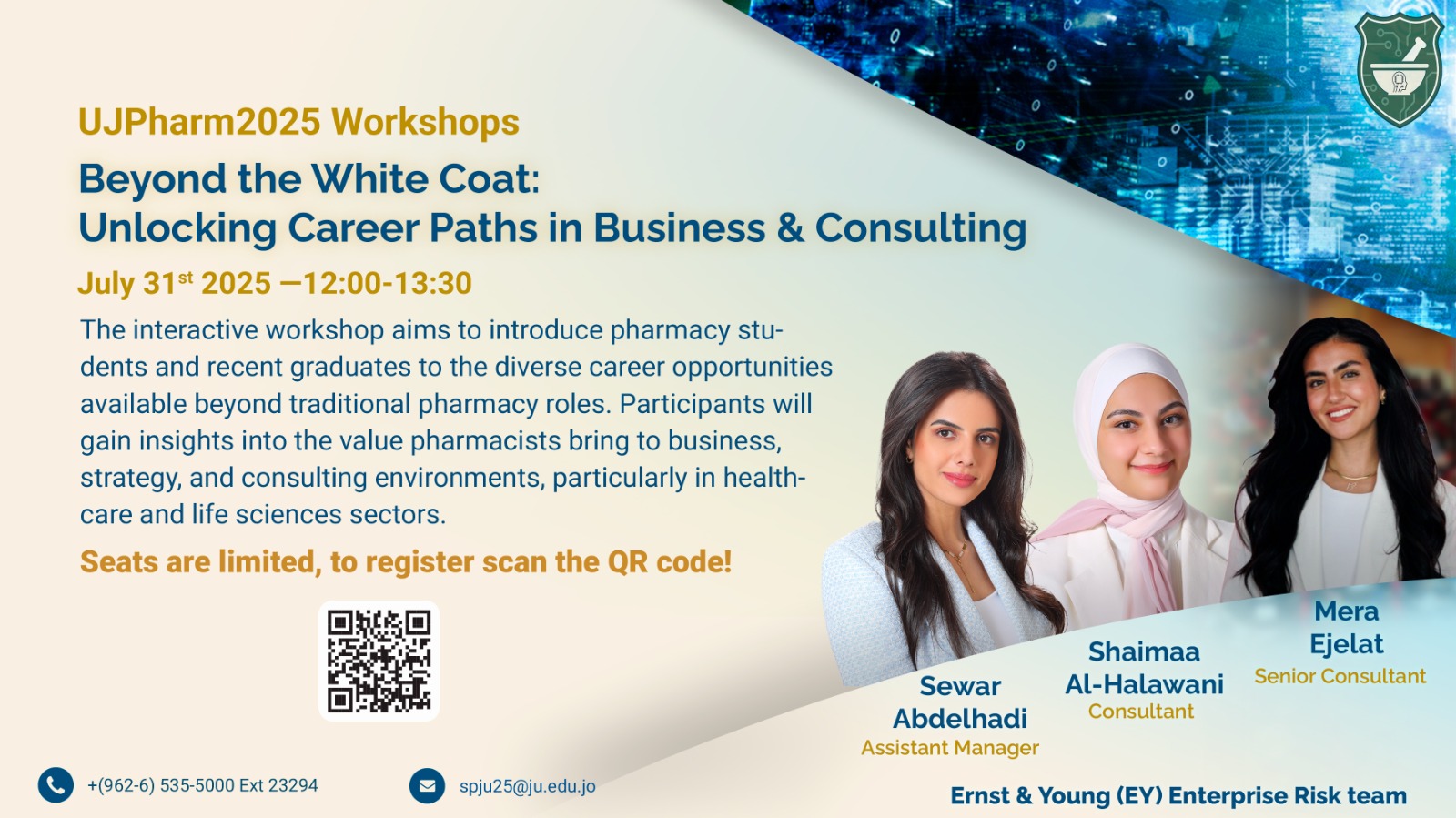 Seats are limited, to register, clich here. July 31st, 12:00 – 13:30, Jordan University Academy, الطابق الارضي مختبر كمبيوتر رقم 5
